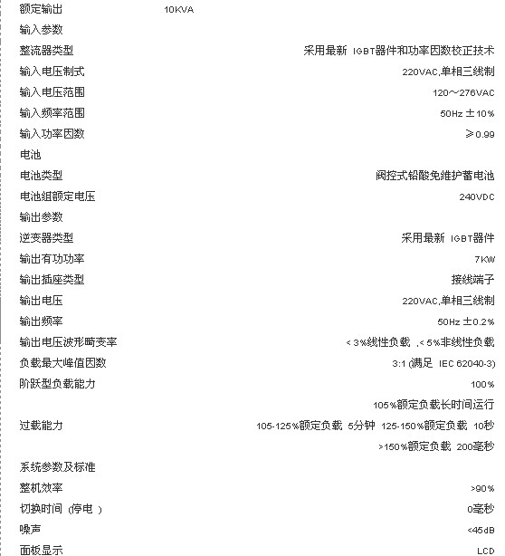 iTrust UH11系列UPS為單進單出型(單相輸入,單相輸出)智能高頻在線式交流不間斷電源系統,容量為10KVA的2種規格(包含標準機型和長延時機型),適用于小型計算機中心、網絡間、通信系統、辦公終端、醫療設備和精密儀器設備的交流供電。