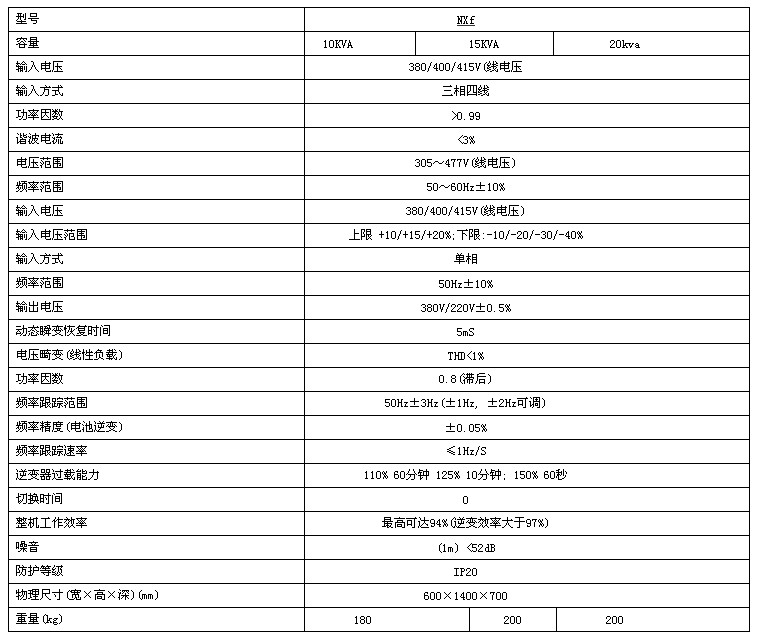 Paradigm NXf系列高性能UPS(10~20KVA)是艾默生網絡能源最新推出的新一代三進單出型全數字在線式智能交流不間斷電源系統,適用于各種單相負載及其它應用環境。包含10kVA、15kVA、20kVA三個型號。可6臺機器直接并聯運行。主要適用于小型數據中心、通信機房、計費中心、精密控制室、過程控制中心。