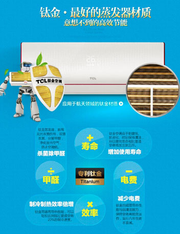 據行業內專家介紹,由于鈦金的各項優異性能,使得其目前已廣泛運用于航天、醫療、船舶、涂料等許多工業中,TCL空調創造性地將鈦金運用于空調行業。