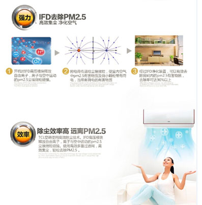 據了解,TCL智能空調開機就能自動檢測室內空氣,使用高效除塵技術,IFD高壓模塊,釋放自由離子,結合使用高效過濾網,自動去除空氣中PM2.5、甲醛、有毒氣體,讓室內空氣瞬間清新。